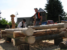 Aufbau eines Blockhauses als Spielhaus für die "Kleinen Strolche" in Heiligengrabe...