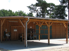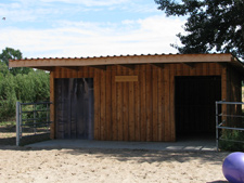 LAG - prämierte Offenstallanlage Raum Pritzwalk, Holzständerbauweise Abb. oben Heulager und Sattelkammer Abb. unten li. Weidehütte, unten re. Anbindeplattz