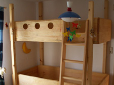 li. Schreibtisch re. Doppelstockbett für Kinder