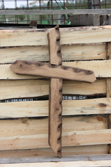 Holzkreuz Strukturdetail des Holzkreuzes, Rückseite